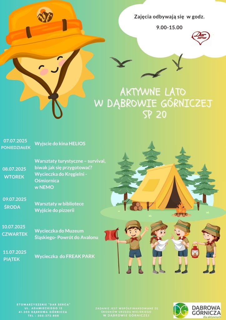 Mamy nadal wolne miejsca na wakacyjne wędrówki z Darem Serca. Lokalizacja Szkoła Podstawowa nr 20 z Oddziałami Integracyjnymi w Dąbrowie Górniczej w Miasto Dąbrowa Górnicza Zapraszamy, z nami nie będziecie się nudzić!
