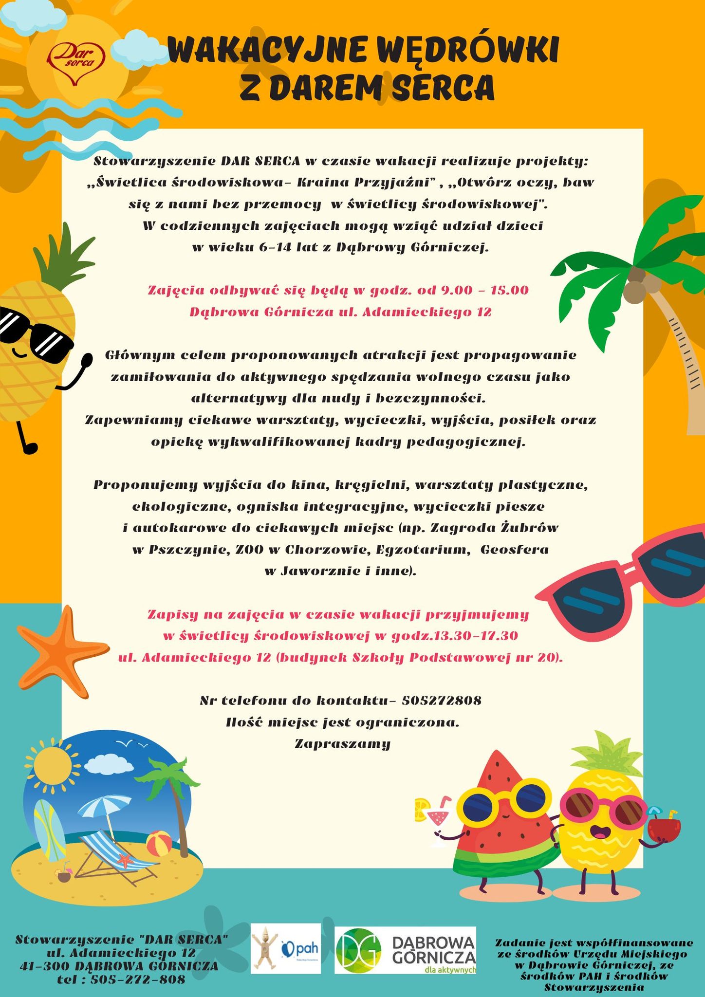 Mamy nadal wolne miejsca na wakacyjne wędrówki z Darem Serca. Lokalizacja Szkoła Podstawowa nr 18 Dąbrowa Górnicza w Miasto Dąbrowa…